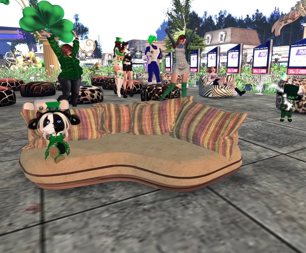 It was all shamrocks, laughter, and the unmistakable glow of Naomi’s smile at the Saint Patrick’s Day BYOK Bingo in support of the Relay For Life of Second Life gathering at The River. Everywhere one looked there were flashes of green — green hats, green drinks, green shoes, and in at least one case, what I am fairly certain was a fully green personality for the duration of the evening. The music by DJ Wyld was lively, the crowd was in high spirits, and the jungle themed sofas and poufs — those ever-reliable centres of social gravity — were quickly claimed by the usual constellation of familiar faces.