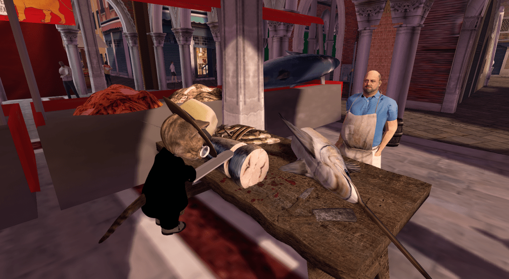 He sampled fish at the market. Selected the largest specimen available. Spoke in an unidentified language to a local feline (who, I am told, responded with suspicious enthusiasm).